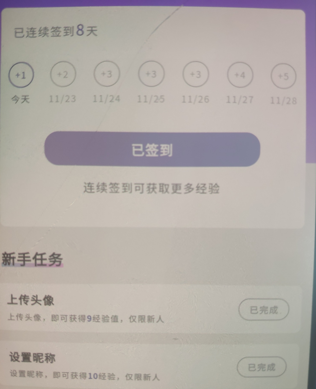 那其他就先不说了,就先说签到的这个每一次一周签完之后再到第二周。就又从第一个积分儿开始了。自从来到社区之后签到一直是这样,我不知道是bug还是官方就是这么设定的。别的可以不提,但签到的这个积分我觉得可以适当的增加一下,就签到的天数越多,积分越多。