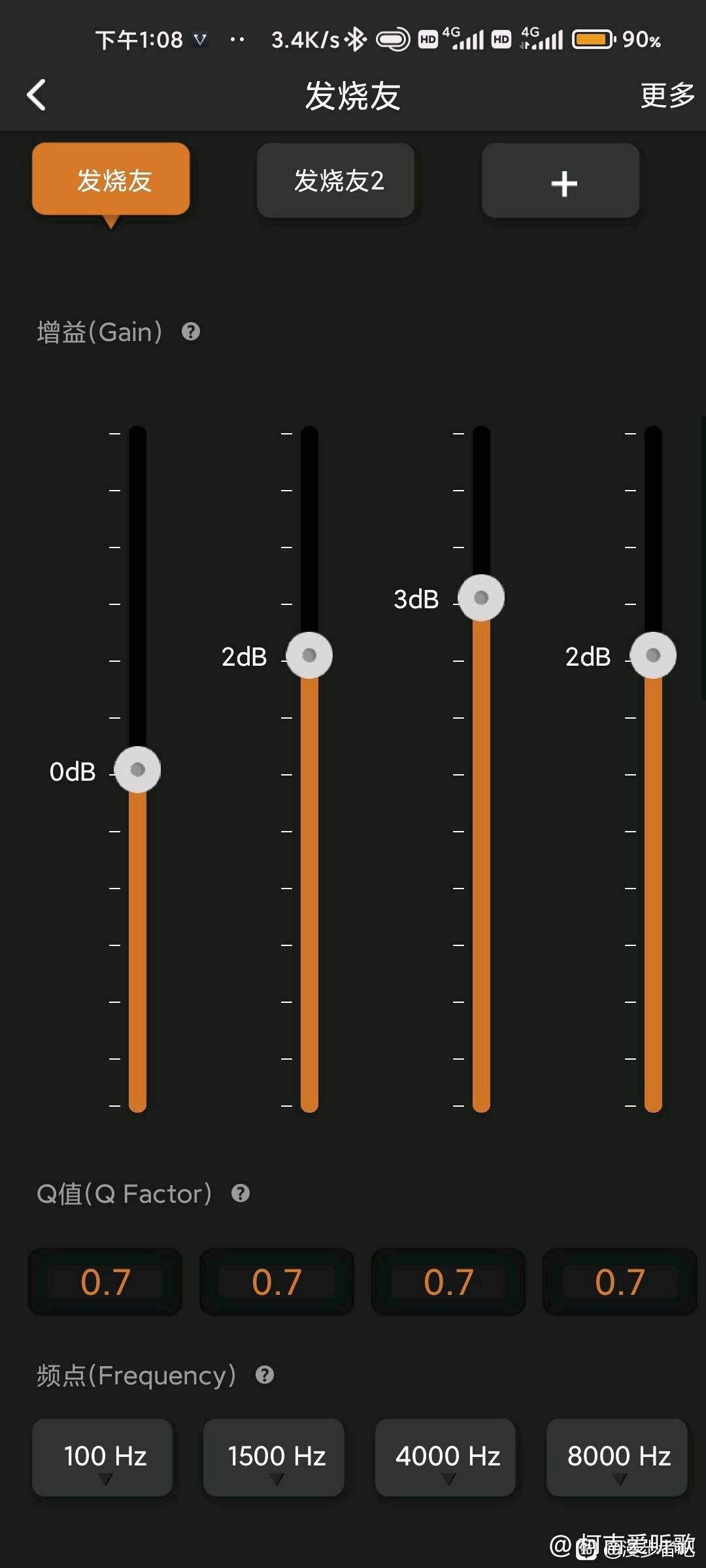 发烧友模式是非常专业的参数均衡器。可以利用q值和频点来对具体的频段提升,可谓是非常专业的了。