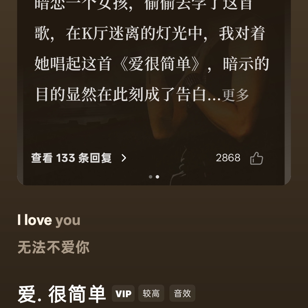 《爱很简单》,关于任何人的关系都是这样,简简单单,天下没有不散的筵席,如果不是无奈,我们就应该以自己纯真的状态去和别人交往,如果你能接受,那我是你的幸运,如果你不喜欢我,那不好意思是老天爷对你的惩罚!晚安啦!