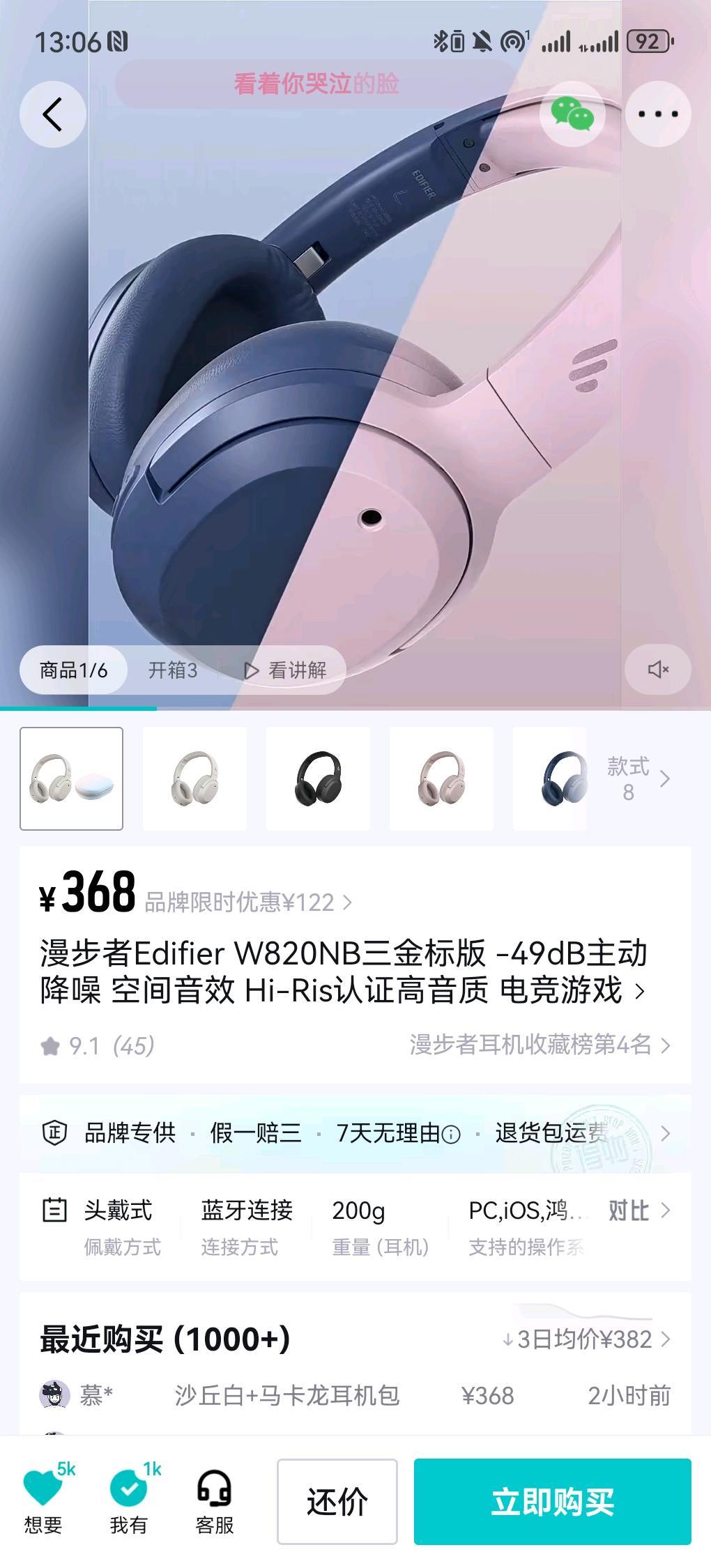 漫步者holespace耳罩
