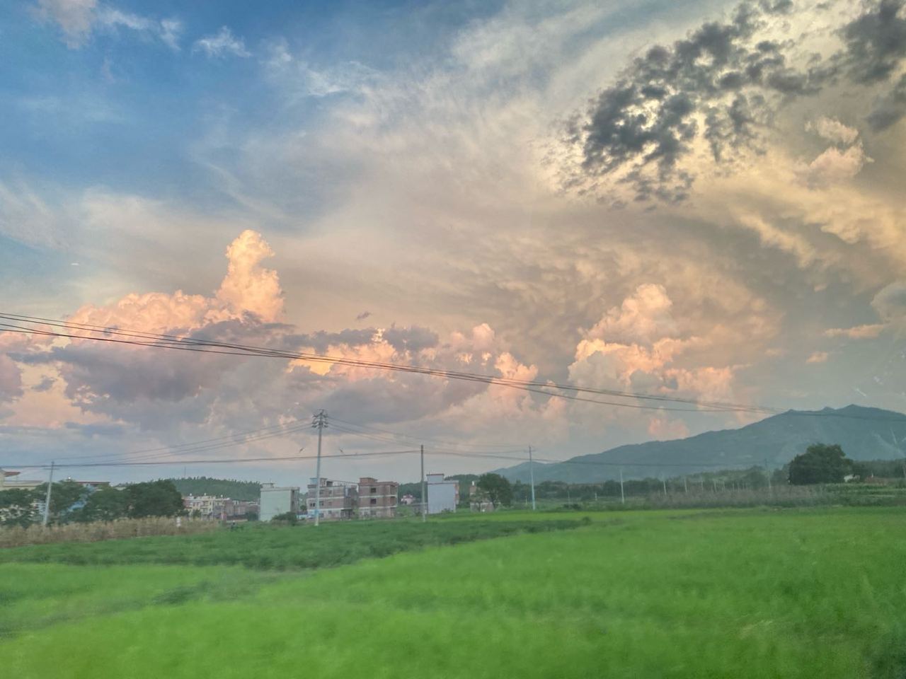 乡间的路并不平坦,走不快,但正好能让我静静欣赏窗外的云彩。文采不出众的我难以用言语描述此刻的情景,应该是春日的黄昏,余晖映织着层层白云,田间的青苗也染上几分昏黄,远处烟火袅袅 ,田夫织妇们丝丝窃语,而我在泥泞的小路上驻足观赏,这大概就是所谓的“春至万物生”吧