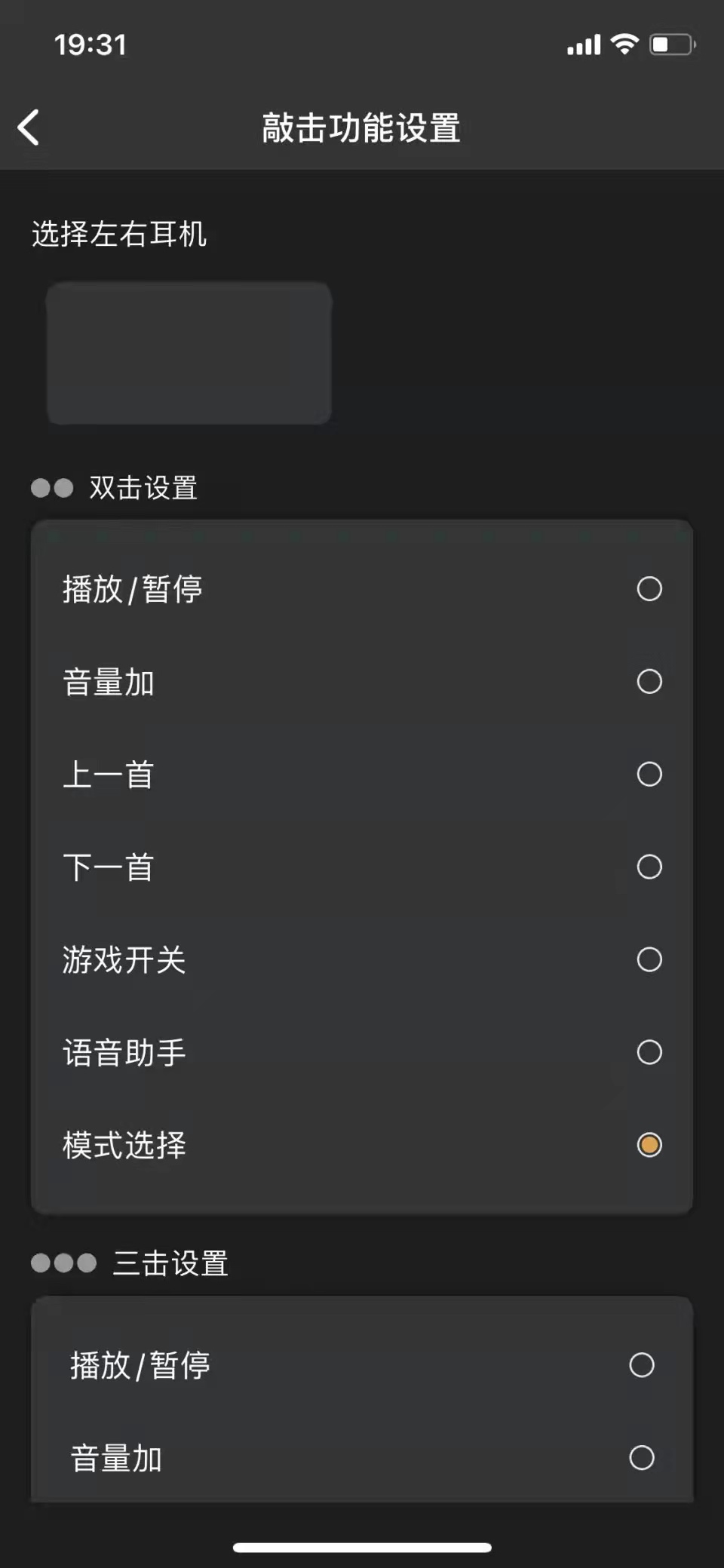 选择左右耳机这里不管是点击文字本身还是下面的灰色空格都没反应,想问下有没有吧友遇到同样的问题,还是我不会操作呀,太难了,求指教,多谢。