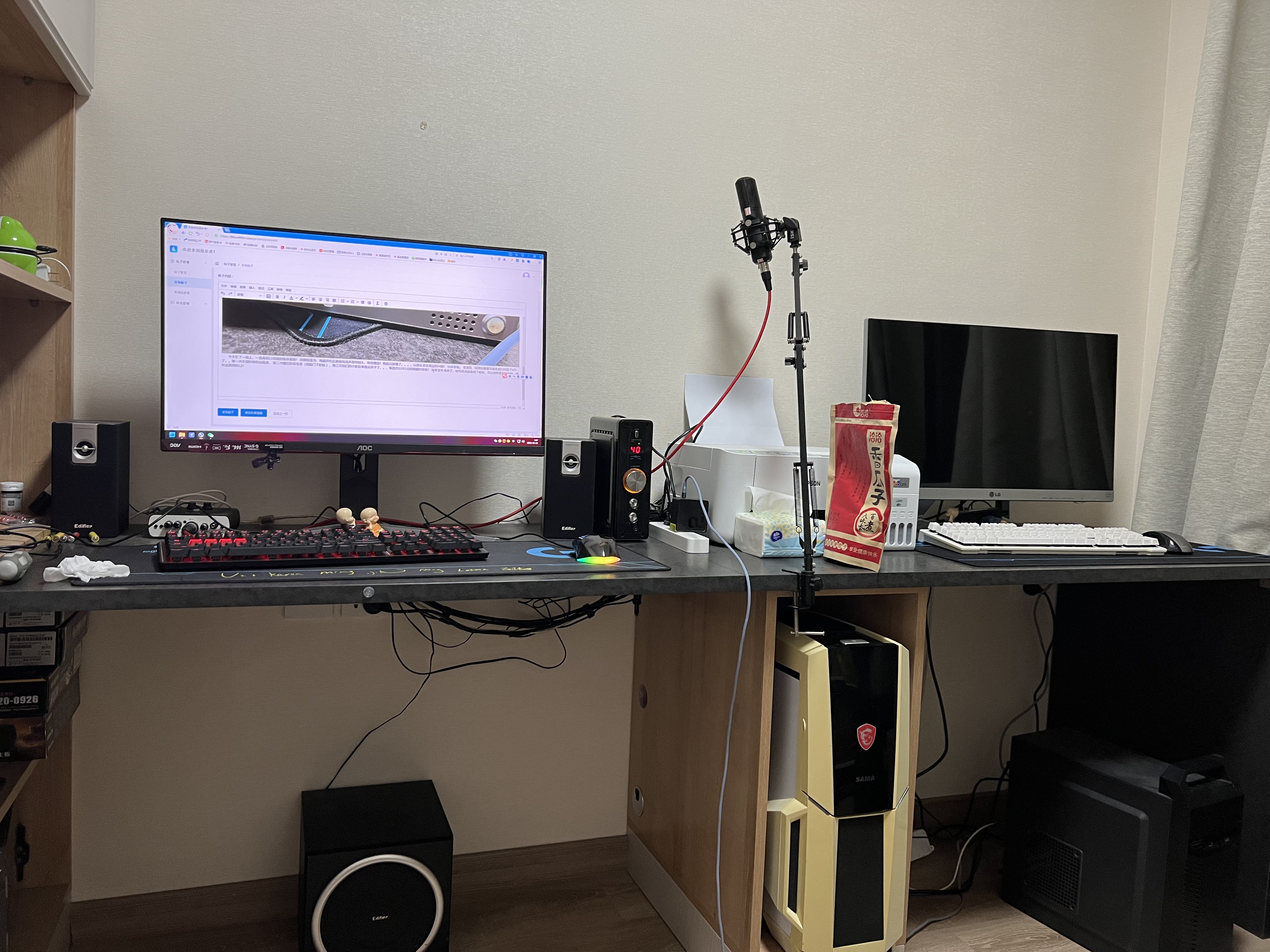 今天忙了一晚上,一直再找C2功放的维修案例! 故障现象为,电脑开机后音响电流声音特别大,特别嘈杂!我瞬间就懵了。。。。以前从来没有过的问题! 10多年啦。 老宝贝,回想你跟着我搬家都已经搬了4次了。。第一次未婚时候的出租房, 第二次婚后的岳母家(倒插门了哈哈 ),第三次我们的小家庭单独买房子了。。,第四次22年5月刚刚搬的新家! 新家里有书房了。被我改成设备间了哈哈,可以放我喜欢的电脑,还有追随我的C2! 这10多年中电脑换了一批,又一批未有你还在!给你们看看我新家的照片哈我刚刚拍摄的!